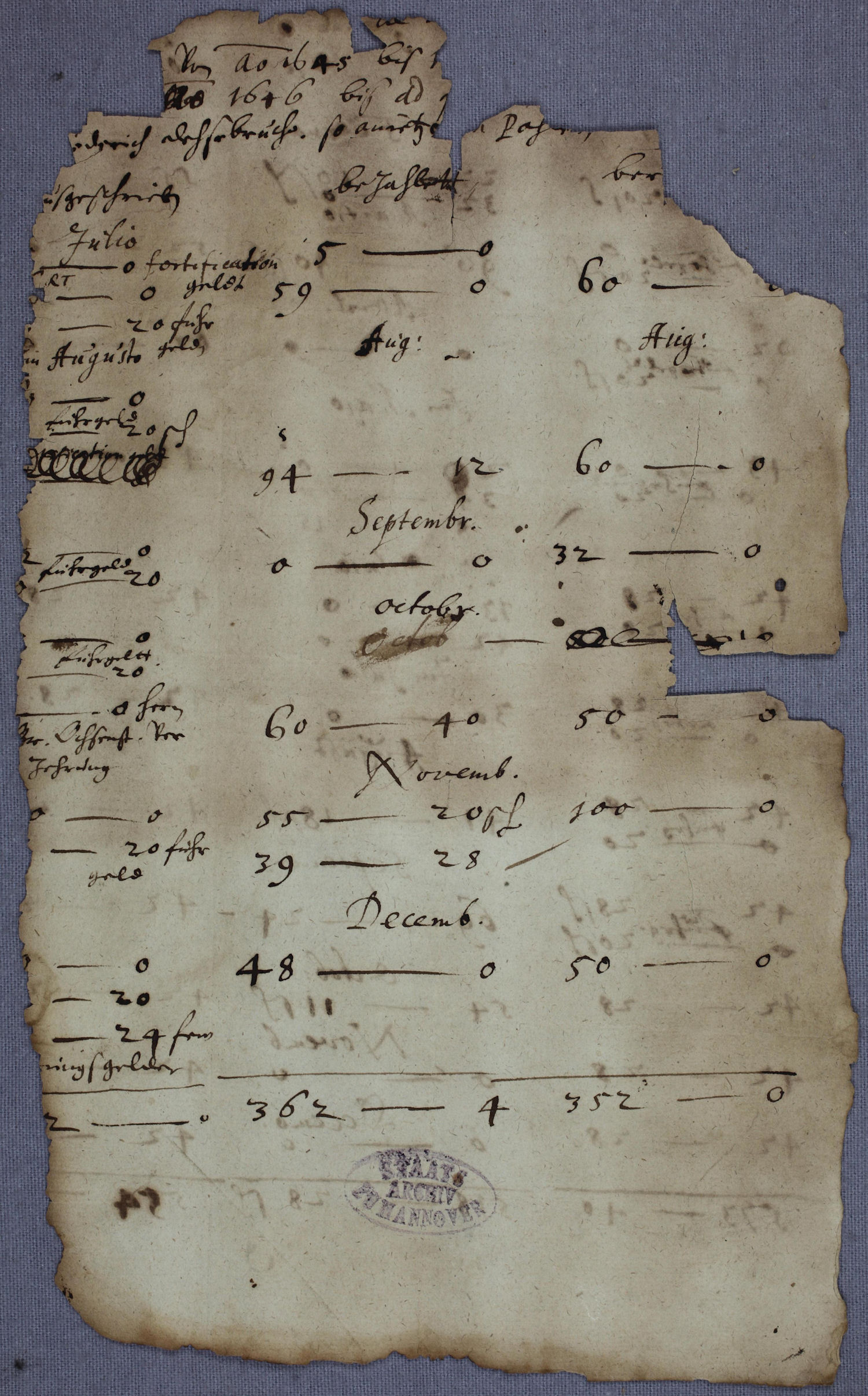 Vom Stader Stadtbrand nach Holstein gewehte Schriftstücke (1659) (Staatsarchiv Stade, Rep 5a Fach 328 Nr. 23)