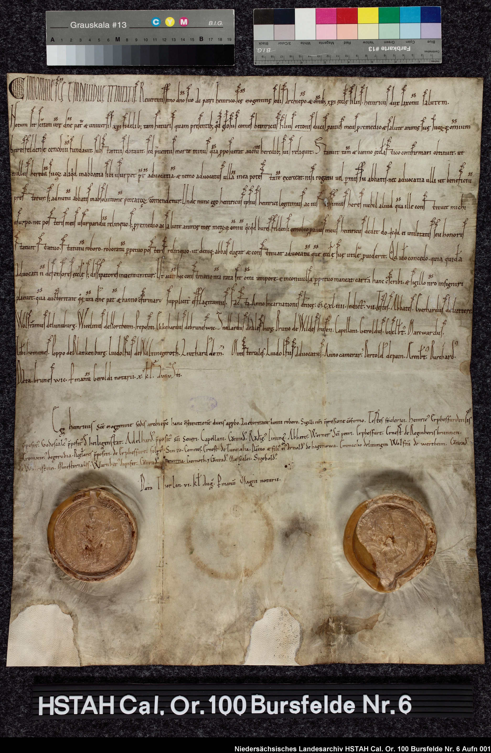 Die älteste Urkunde Heinrichs des Löwen (1144) (NLA - Hannover - Cal. Or. 100 Bursfelde Nr. 6)