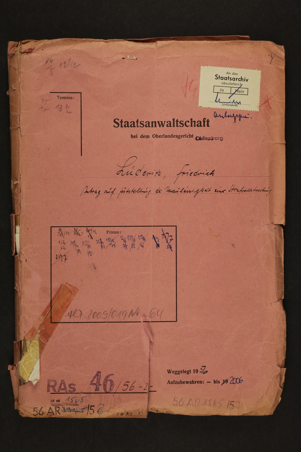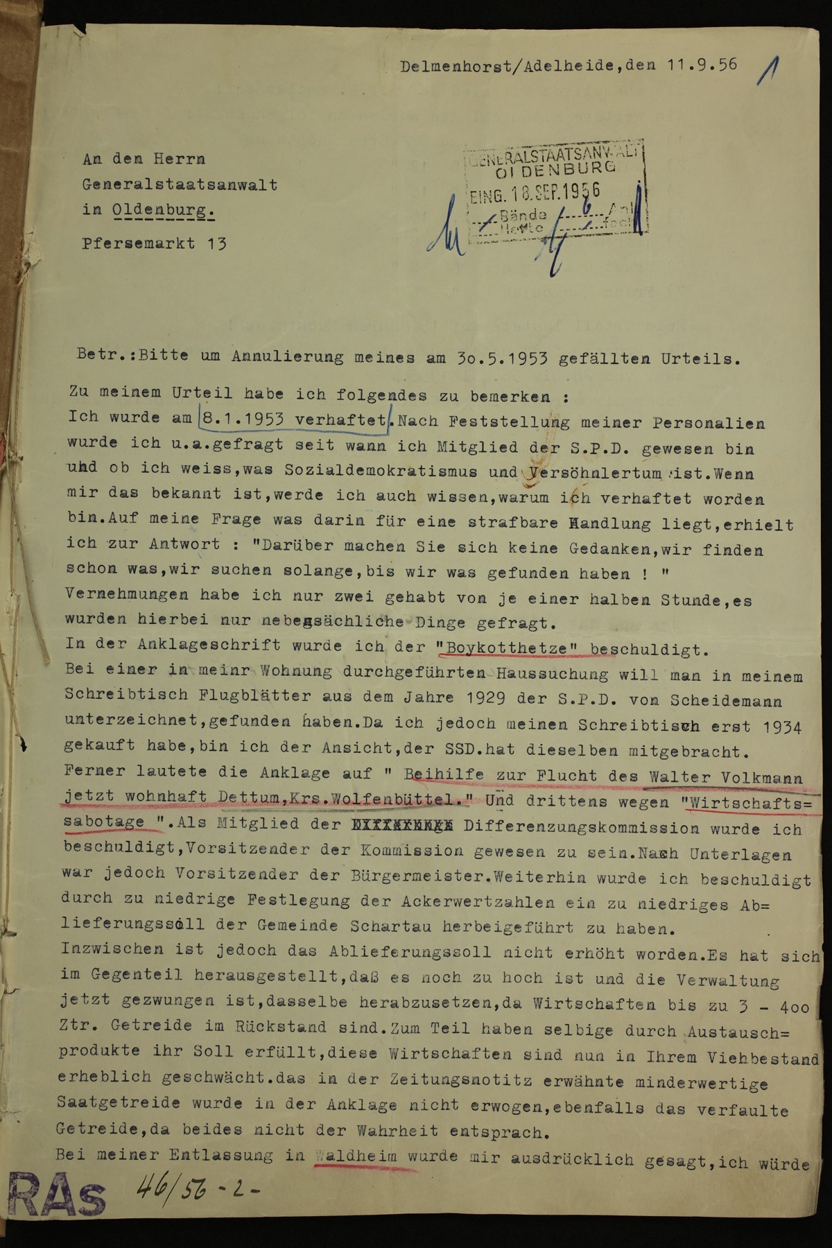 Die Waldheimer Prozesse vor 60 Jahren oder: Friedrich Lüderitz beantragt die Aufhebung eines politischen Strafurteils (1956) (NLA - Oldenburg - Rep. 945 Akz. 2009/019)