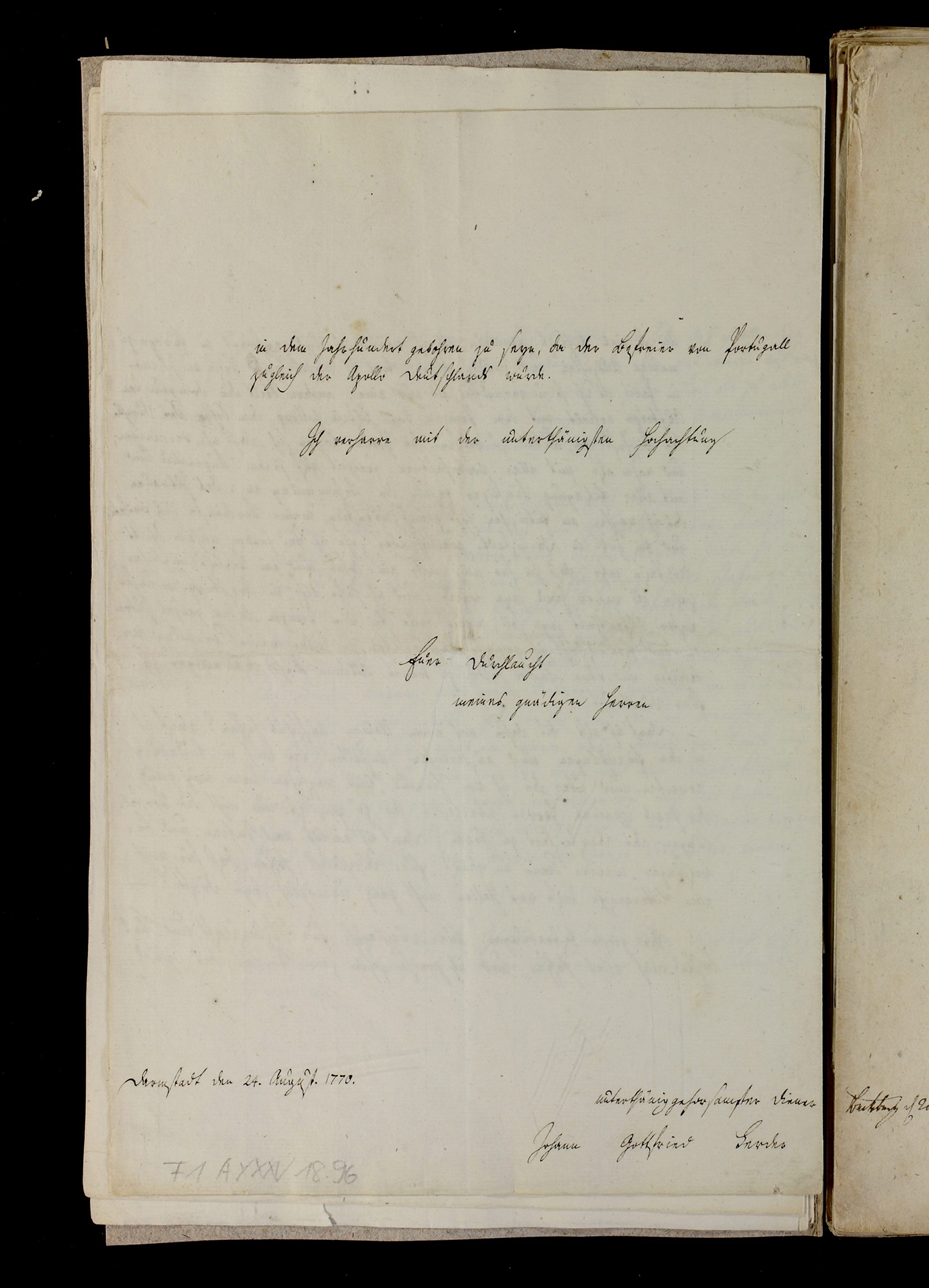 Ankunft Johann Gottfried Herders in Bückeburg 1771 (NLA BU F 1 A XXXV 18 Nr. 96)