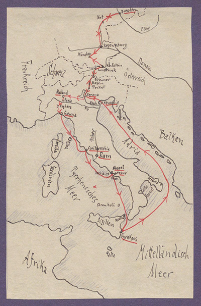 Nachlässe sind eine besondere Quellengattung, die häufig durch ganz unterschiedliche Dokumente geprägt sind und viele Überraschungen bereithalten. So auch im Falle des hier vorgestellten Reisetagebuchs des Estebrügger Lehrers Werner Hohlfeld, dessen Italienreise vor 100 Jahren im Sommer 1924 stattfand.