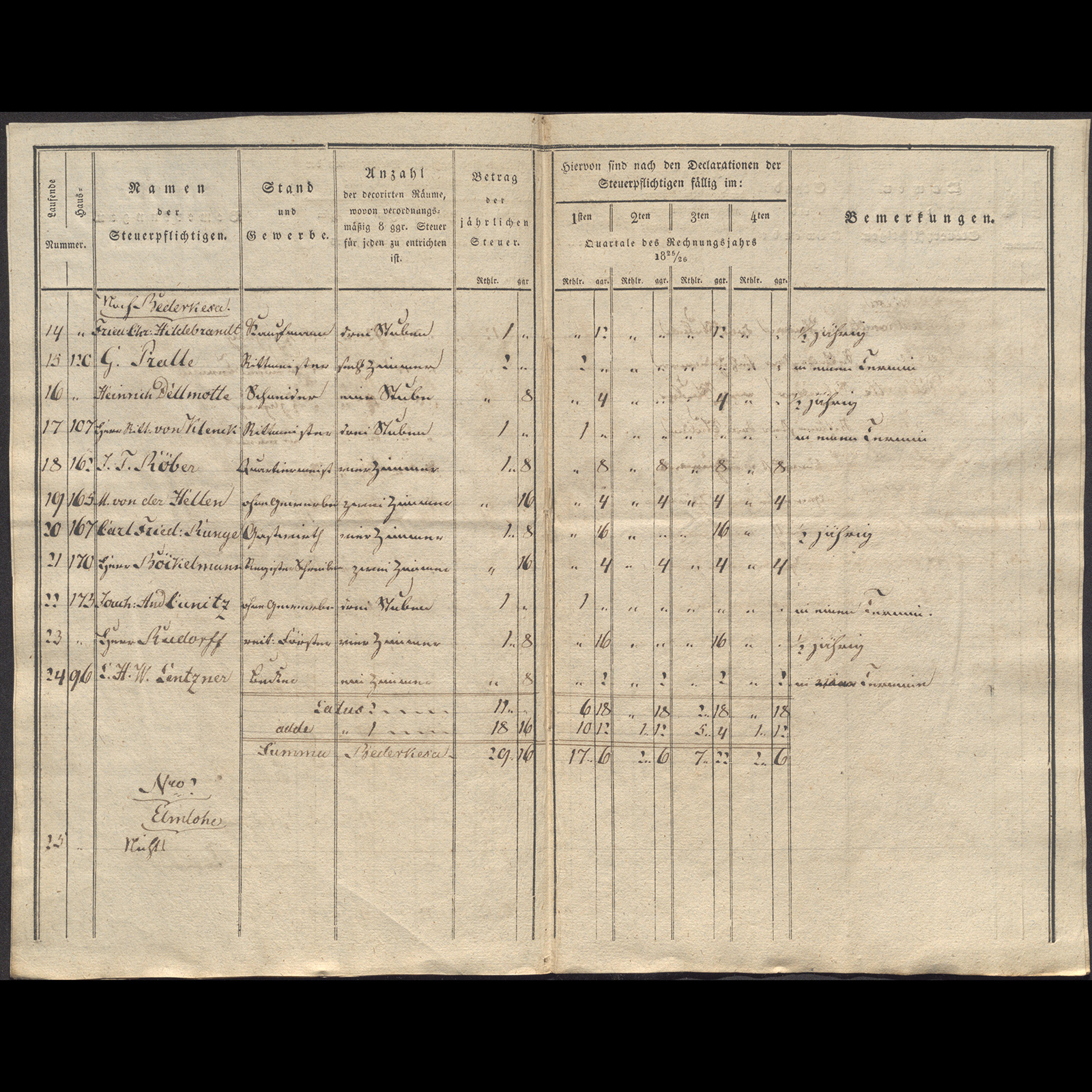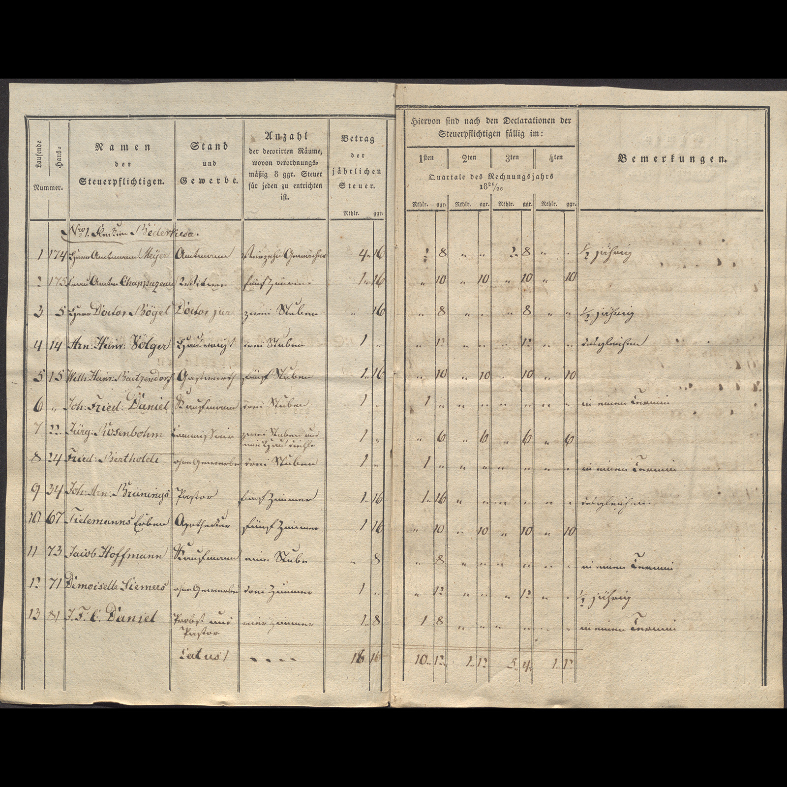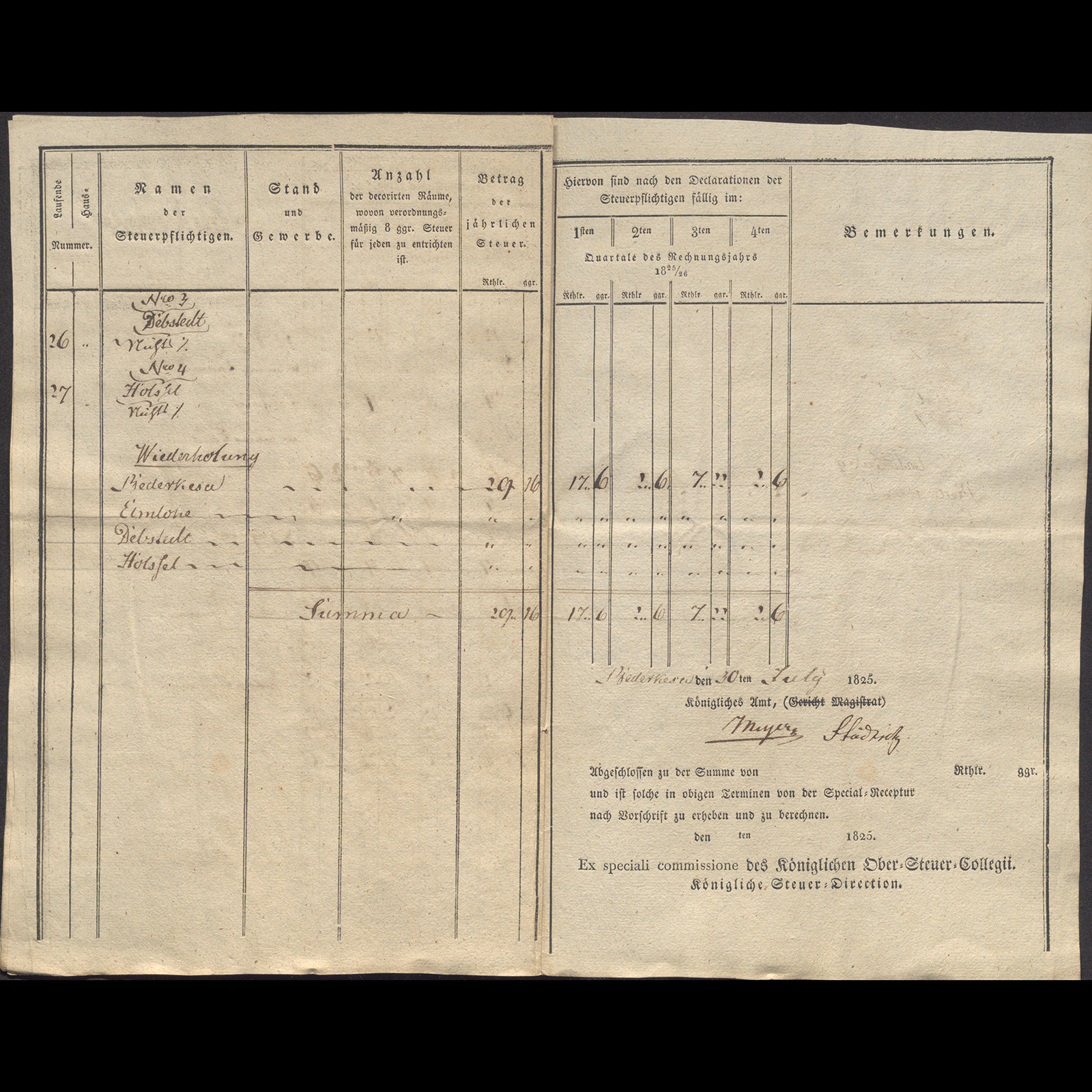 Die Tapetensteuer von 1825 im Flecken Bederkesa (NLA ST, Rep. 74 Lehe Nr. 282)